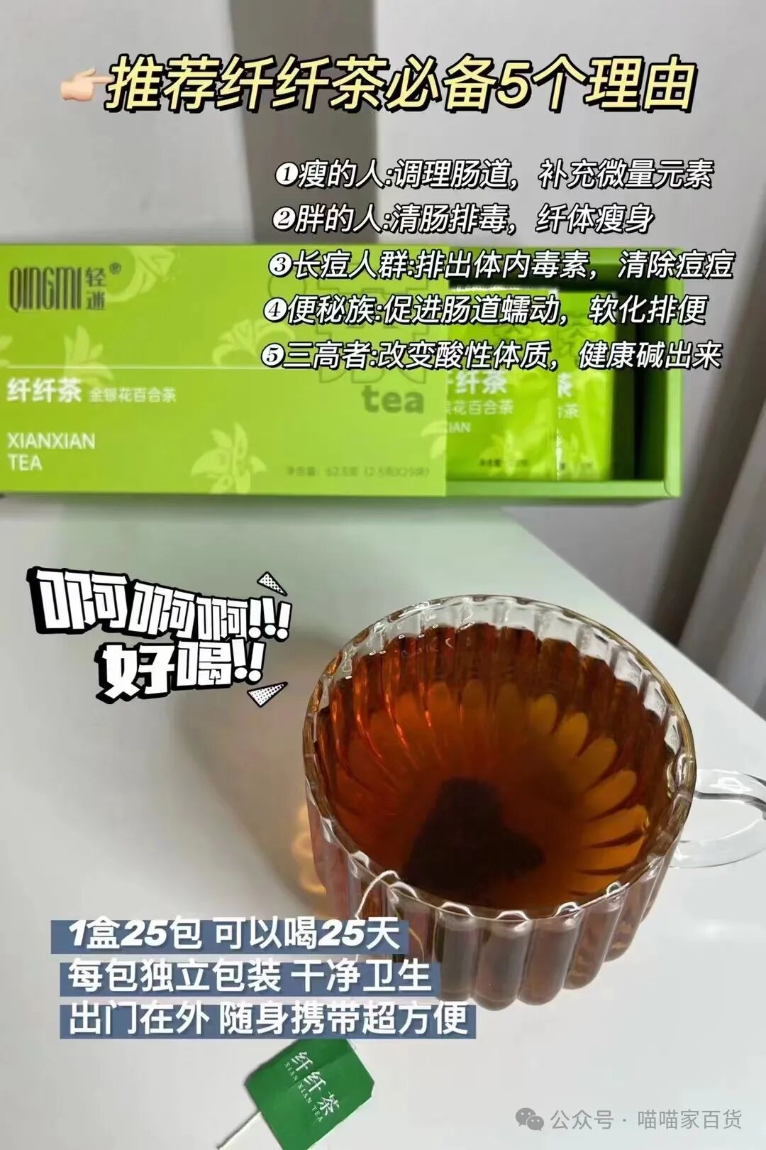 纤纤茶中的某些成分能够调节血糖水平,预防糖分转化为脂肪储存。适合需要控制糖类摄入以避免肥胖或糖尿病风险的人群使用。